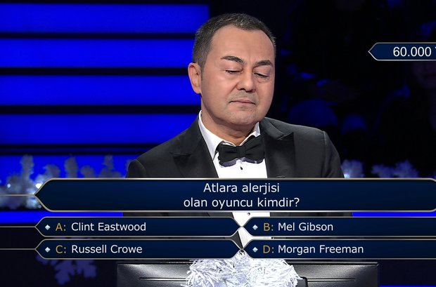 Milyoner'de yarışan Serdar Ortaç 60.000 TL değerindeki "Atlara alerjisi olan oyuncu kimdir?" sorusunu açtırmayı başardı.