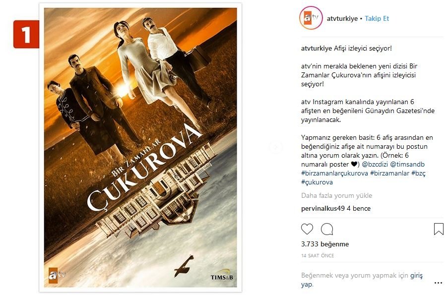 atv Instagram kanalında yayınlanan 6 afişten en beğenileni Günaydın Gazetesi'nde yayınlanacak.