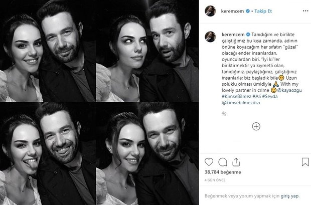 Başarılı oyuncu Keremcem, Özgü Kaya ile çektiği eğlenceli fotoğrafın altına; "Tanıdığım ve birlikte çalıştığımız bu kısa zamanda, adının önüne koyacağım her sıfatın "güzel" olacağı ender insanlardan, oyunculardan biri. "İyi ki"ler biriktirmektir ya kıymetli olan, tanıdığınız, paylaştığınız, çalıştığınız insanlarla; biz başladık bile. Uzun soluklu olması ümidiyle." notunu düşerken, Özgü Kaya ise paylaştığı aynı fotoğrafın altına; "Sevda ve Ali. Hikayelerini yaşamaktan, yaşatacak olmanın heyecanını taşımaktan ve bunu inanılmaz güzel adam Keremcem ile paylaşıyor olmaktan çok mutluyum! Çok az kaldı." notunu yazdı.