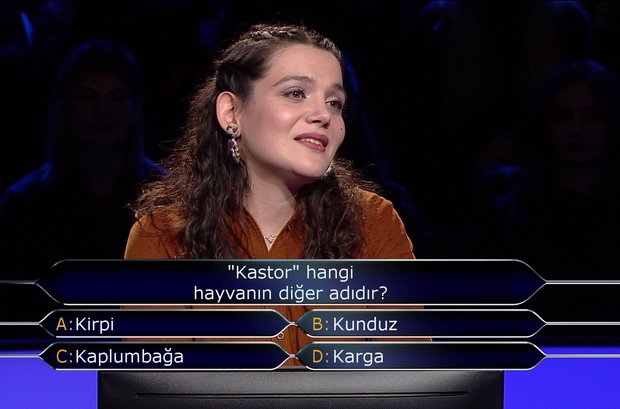 'Kastor' hangi hayvanın diğer adıdır? A: Kirpi B: Kunduz C: Kaplumbağa D: Karga Doğru cevap) B: Kunduz