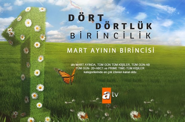 Reyting rekorları kıran dizi ve programlarıyla yılların birincisi olan atv, Mart ayında da Tüm Gün – Tüm Kişiler, Tüm Gün – AB, Tüm Gün – 20+ ABC1 ve Prime Time – Tüm Kişiler kategorilerinde aldığı izlenme oranlarıyla rakiplerine fark atarak zirvede tek başına yer aldı.