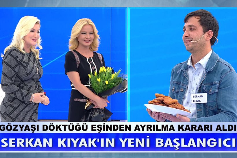 Uşak'tan Müge Anlı'ya katılan Serkan Kıyak, eşinin 2 yaşındaki bebeklerini ve görme engelli anneannesini bırakıp 3 Aralık'ta ortadan kaybolduğunu söyledi. Yetiştirme yurdunda büyüdüğü için çocuğunun da annesiz kalmasını istemediğini söyleyen Serkan eşinin kandırıldığını ifade etmişti. 2.5 yıllık evliliklerinde Zehra'nın kendisini aldattığını ama her seferinde affettiğini de ekledi. Zehra'nın engelli anneannesine çocuklarını bıraktığını ve anneannesinin maaş kartlarını aldığını söyleyen Kıyak, eşine kendi elleriyle börekler açtığını, yemekler yaptığını da anlattı. "Güzel karım, melek karım" diyerek de eşinin dönmesi için sürekli çağrıda bulundu. Yayın sırasında bağlanan bir izleyici ise Zehra'nın kendisini aradığını ve karşı komşuları pideci Gökhan'la kaçtıklarını söylediğini söyledi. Ardından canlı yayına telefonla bağlanan Zehra, Serkan'ı ve ailesini istemediğini ve anneannesinin de umurunda olmadığını aktardı. Zehra kesin bir dille boşanmak istediğini söylese de Serkan, Zehra'nın dönmesi için canlı yayında sinir krizi geçirerek gözyaşlarına boğuldu. Kendisini yerlere atan Serkan eşine yalvarsa da ikna edemedi.