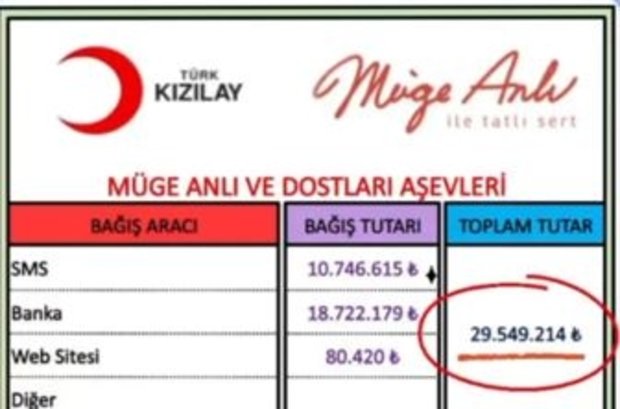 Müge Anlı sosyal medya hesabından paylaşımla toplanılan miktarı duyurdu. Gönderdiğiniz bağışlar çığ gibi büyümeye devame diyor. Allah hepinizden razı olsun. Birlikte çok daha güçlüyüz... " sözleriyle duygularını aktardı. Müge Anlı ve Dostları'nın açacağı aşevleri depremzedelere sıcak yemek sunacak. Deprem bölgesindeki vatandaşlara destek sağlamak için siz de MÜGE yazarak 2868'e mesaj gönderebilirsiniz.