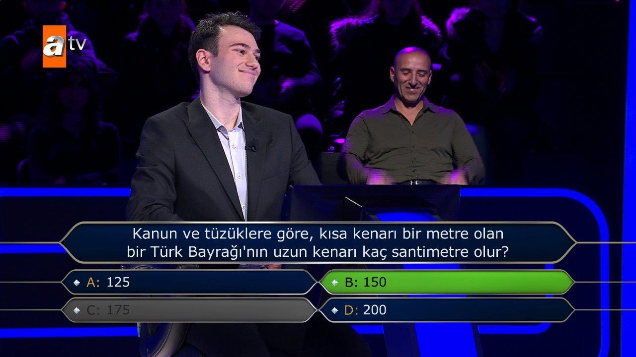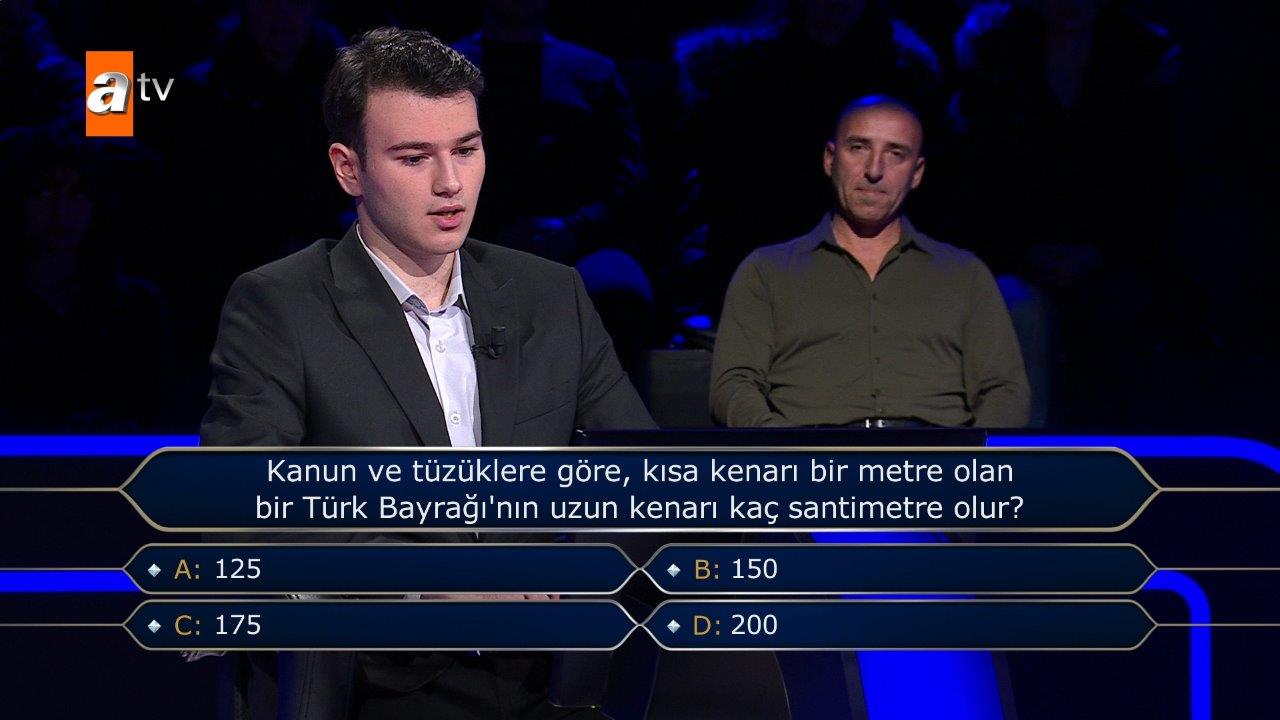 Kanun ve tüzüklere göre, kısa bir kenarı bir metre olan bir Türk Bayrağı'nın uzun kenarı kaç santimetre olur?