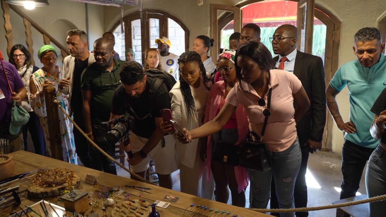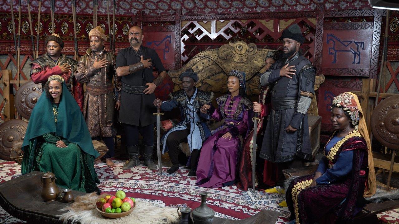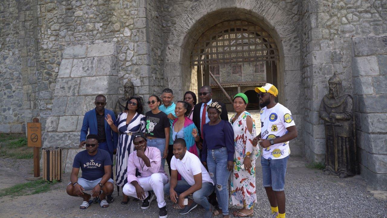 Bozdağ Film Platolarında Kuruluş Osman setini gezen Angola ve Mozambik'li ziyaretçiler, geleneksel tarihi set yapılarını görüp, Kuruluş Osman dizisinin kostümlerini denedi.